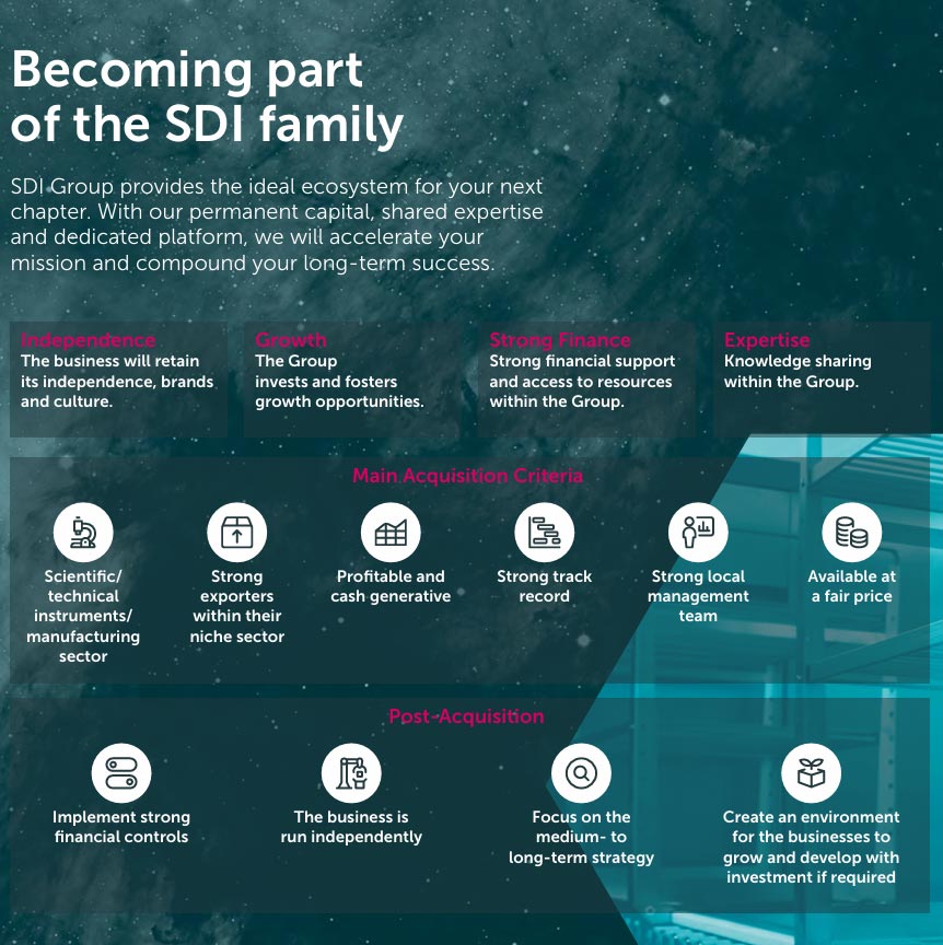 SDI Group is an acquisitive group, focused on companies that design and manufacture specialist lab equipment, industrial & scientific sensors and industrial & scientific products.